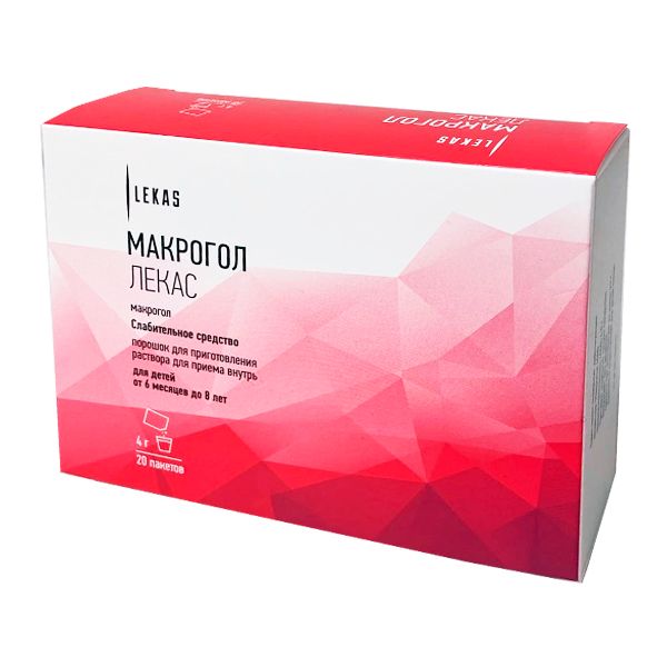 Макрогол Лекас порошок для приготовления раствора для приёма внутрь 4г пакеты №20