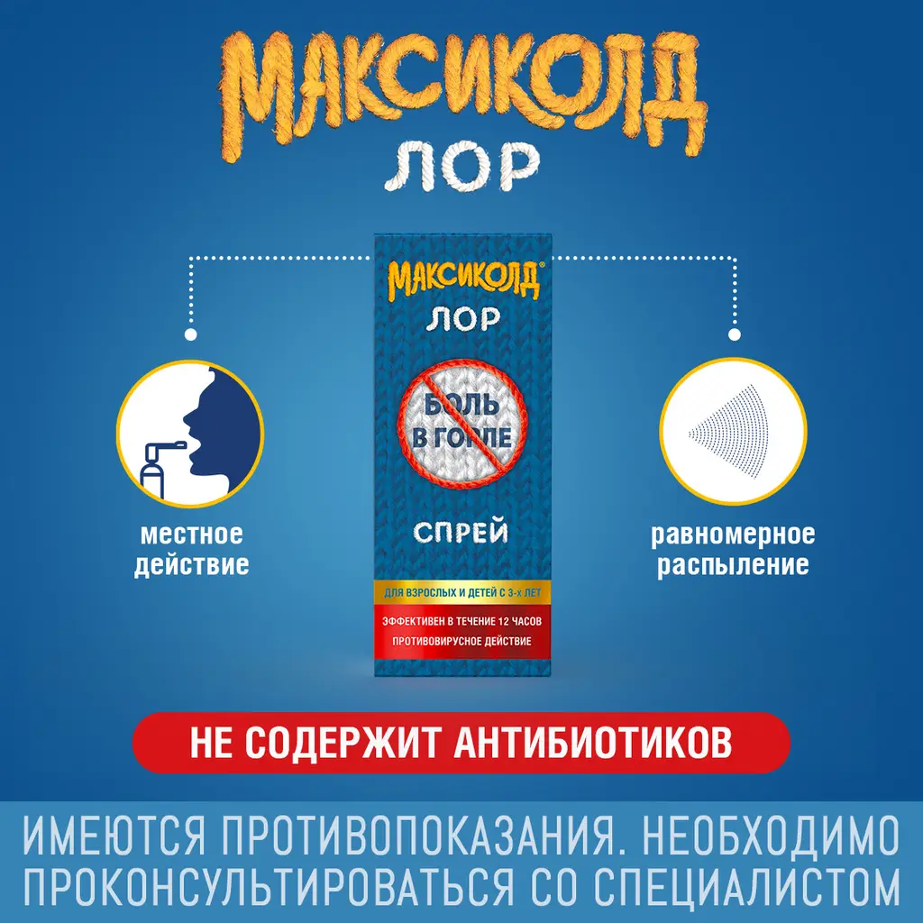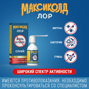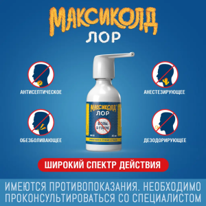 Антисептическое средство для местного применения для нанесения на слизистые оболочки. Обладает противомикробным, противогрибковым, обезболивающим, обволакивающим и дезодорирующим действием. Противомикробное действие препарата Максиколд® Лор связано с подавлением окислительных реакций метаболизма бактерий (гексэтидин – антагонист тиамина). Препарат обладает широким спектром антибактериального и противогрибкового действия, в частности в отношении грамположительных бактерий и грибов рода Candida, однако препарат Максиколд® Лор может также оказывать эффект при лечении инфекций, вызванных, например, Pseudomonas aeruginosa или Proteus. В концентрации 100 мг/мл препарат подавляет большинство штаммов бактерий. Развитие устойчивости не наблюдалось. Максиколд® Лор оказывает слабое анестезирующее действие на слизистую оболочку.