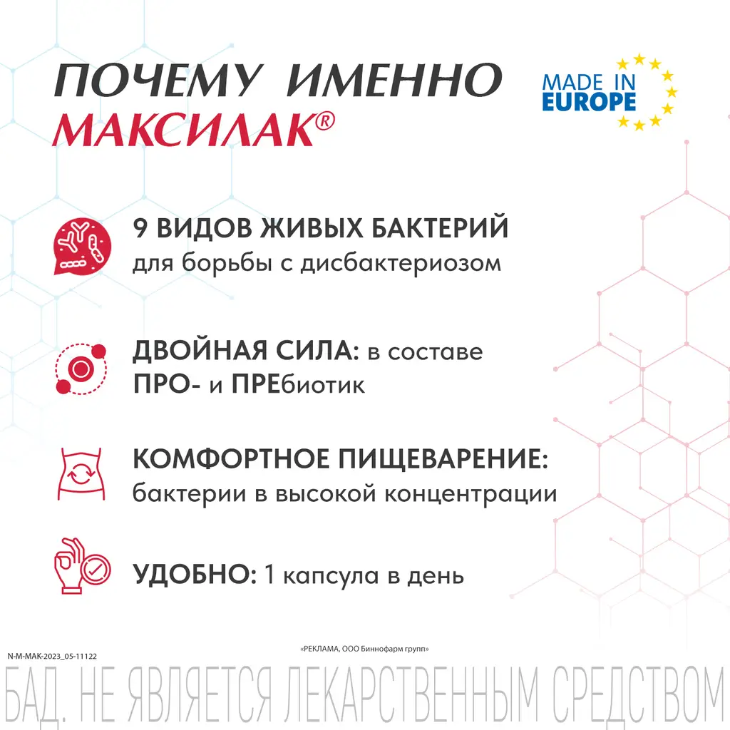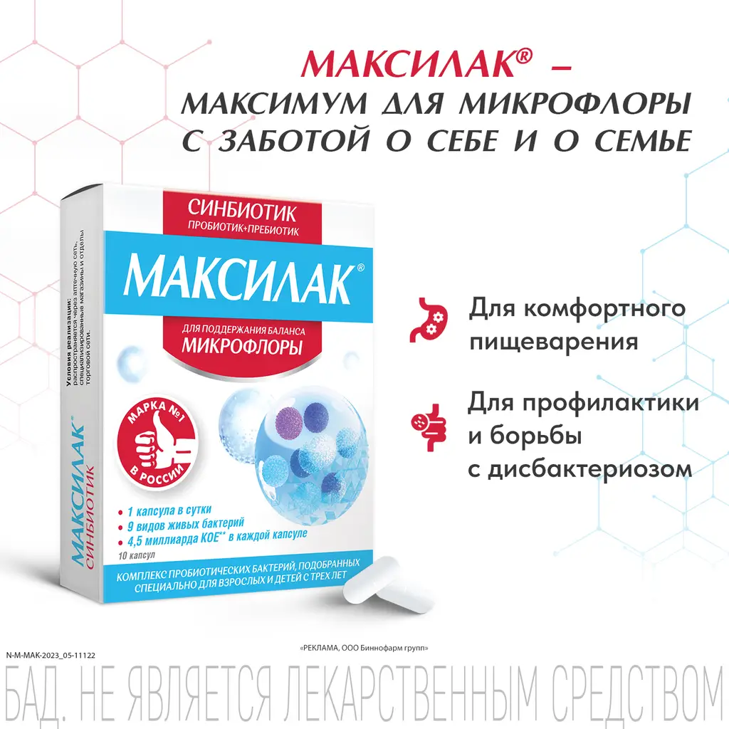 Максилак - это инновационный подход к коррекции нарушений микрофлоры желудочно-кишечного тракта, вызванного приемом лекарственных средств. Состав синбиотика Максилак уникален и сбалансирован.