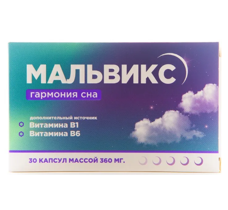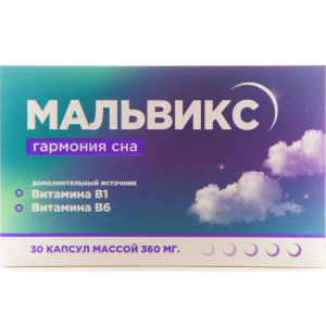 1 капсула содержит: мелатонин 3 мг, пиридоксина гидрохлорида (Витамин В6) 2 мг, тиамина гидрохлорида (Витамин В1) 1,5 мг.
