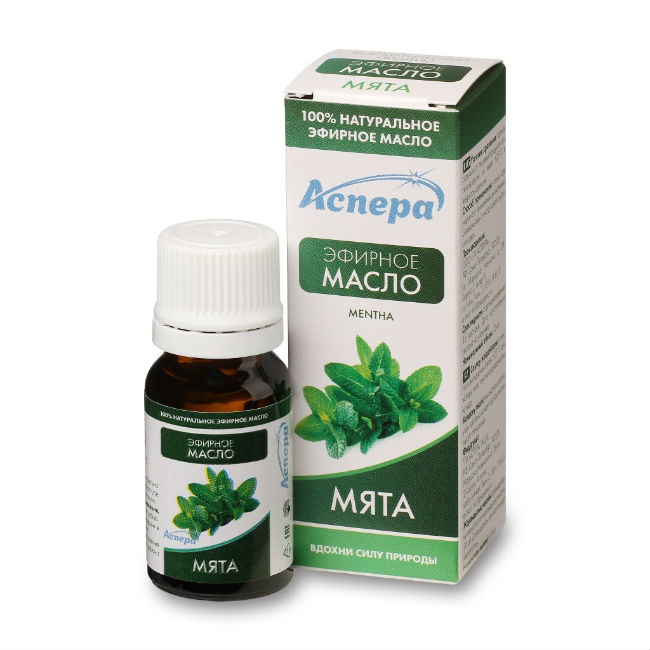 Эфирное масло Мята обладает антисептическим, антивирусным, противовоспалительным, бактерицидным, обезболивающим, спазмолитическим действием. Устраняет воспаление десен и неприятный запах. Эффективно при воспалении, раздражении, при грибковых поражениях кожи и экземах. Используется для очистки воздуха в помещении в период эпидемии гриппа. Снимает депрессию, нервное возбуждение.