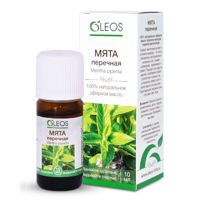 Эфирное масло мяты перечной получают из свежих листьев методом паровой дистилляции. Эфирное масло содержит органические соединения: ментол, лимонен, цинеол, пинен, менто-фуран, тимол, карвакрол, кариофилен и другие компоненты. Эфирное масло легкое, текучее, бесцветное. Аромат бодрящий, холодный, свежий, ментоловый.