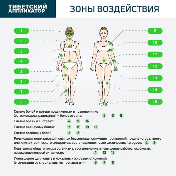 Тибетский аппликатор мягкий валик универсальный кладут на горизонтальную поверхность (например, на кровать или на пол), затем на него ложатся, обеспечивая колющее воздействие с помощью веса тела. Сила вдавливания должна обеспечивать колющее воздействие в пределах болевой переносимости, которое обычно сопровождается ощущением тепла. Ощущение тепла свидетельствует о высокой эффективности воздействия. Время и сила воздействия являются индивидуальными для каждого человека и определяются опытным путем. Период воздействия может колебаться от одной минуты до нескольких часов, но в большинстве случаев процедура длится 5-15 минут. Рекомендуется проводить 1-2 процедуры в сутки. Проконсультируйтесь со специалистом об индивидуальных особенностях применения.