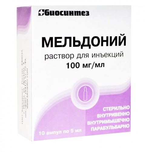 Мельдоний раствор для инъекций 100мг/мл ампулы 5мл №10