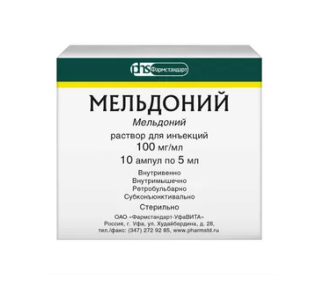 Мельдоний раствор для инъекций 100мг/мл ампулы 5мл №10