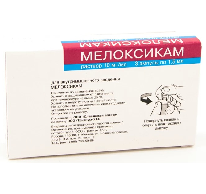 Мелоксикам раствор для внутримышечного введения 10мг/мл ампулы 1,5мл №3