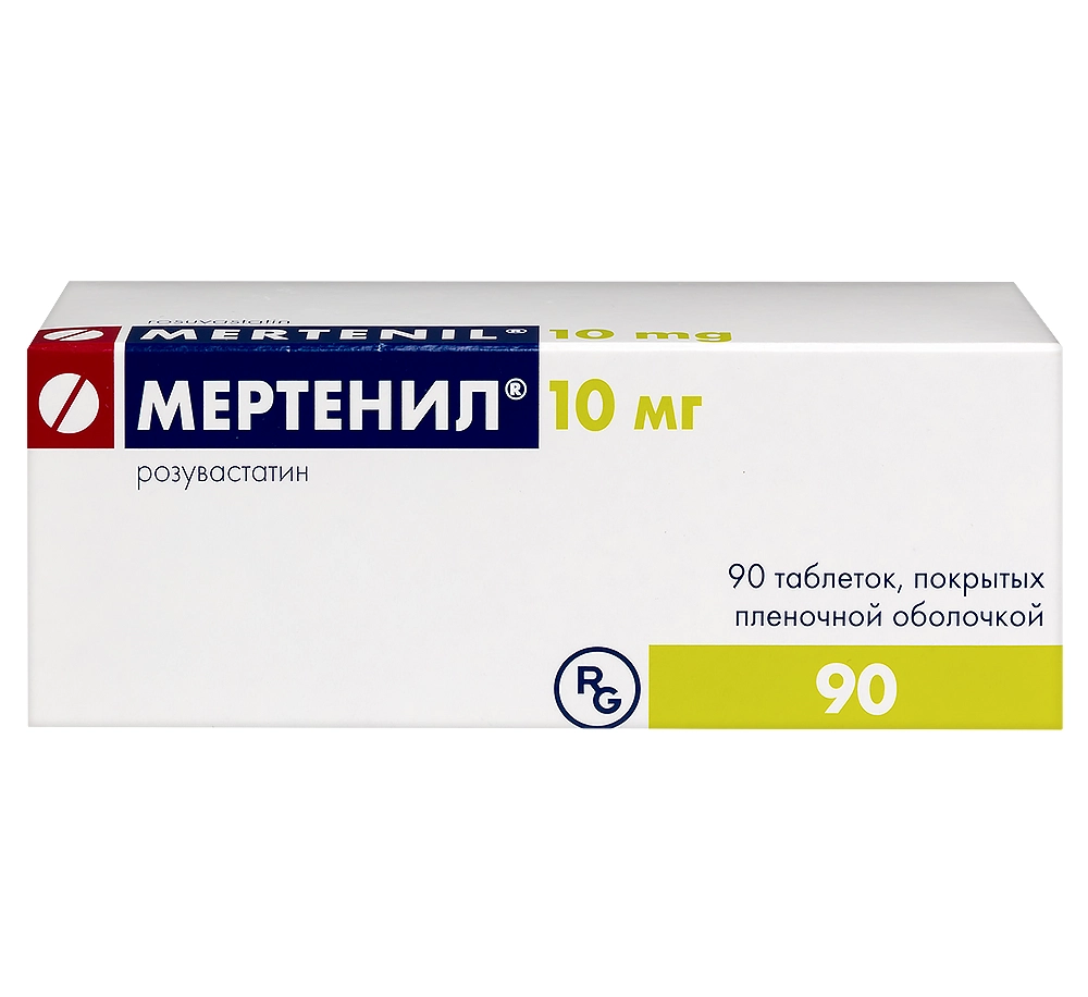Однако увеличение числа случаев миозита и миопатии было выявлено у пациентов, принимавших другие ингибиторы ГМГ-КоА-редуктазы совместно с производными фиброевой кислоты, включая гемфиброзил, циклоспорин, никотиновую кислоту в липидснижающих дозах, противогрибковые препараты, ингибиторы протеаз и макролидные антибиотики. Гемфиброзил увеличивает риск возникновения миопатии при сочетанном назначении с некоторыми ингибиторами ГМГ-КоА-редуктазы. Поэтому одновременный приём розувастатина и гемфиброзила не рекомендован. Должно быть тщательно оценено соотношение риска и возможной пользы при совместном применении розувастатина с фибратами или никотиновой кислотой в липидснижающих дозах (более 1 г). Противопоказан одновременный приём розувастатина в дозе 40 мг и фибратов (см. разделы «Взаимодействие с другими лекарственными средствами» и «Побочное действие»). Препарат Мертенил® не следует назначать пациентам с острыми, тяжёлыми заболеваниями, позволяющими предположить миопатию или с возможным развитием вторичной почечной недостаточности (например: сепсис, артериальная гипертензия, хирургическое вмешательство, травма, метаболический синдром, судороги, эндокринные нарушения, электролитные нарушения (см. раздел «С осторожностью»).