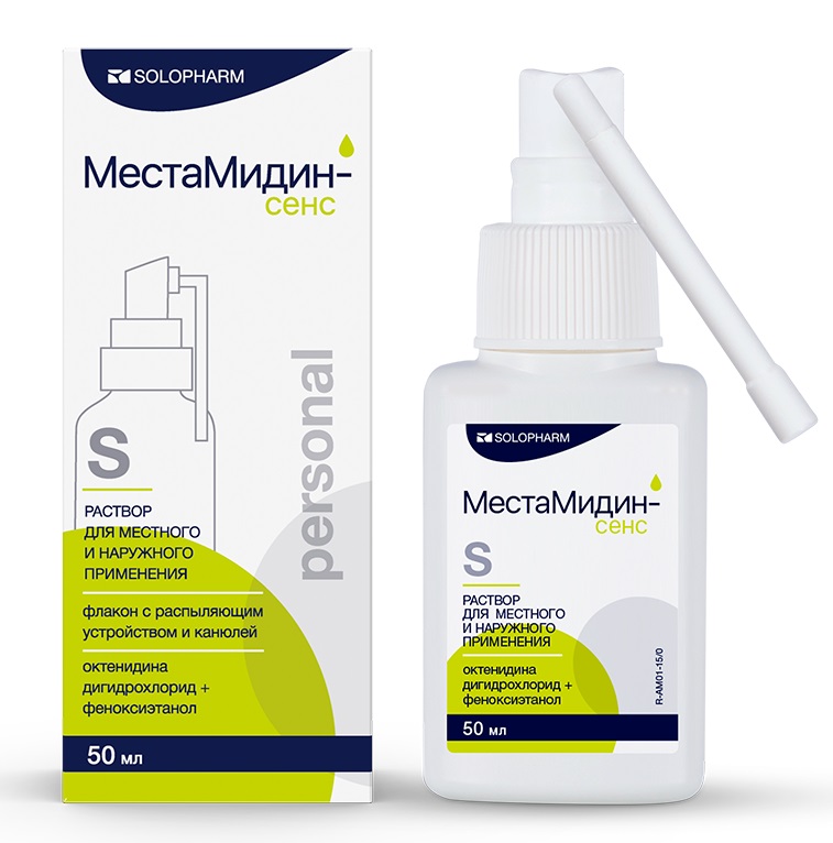 МестаМидин-сенс personal раствор для местного и наружного применения флакон с распыляющим устройством со складывающейся канюлей 50мл