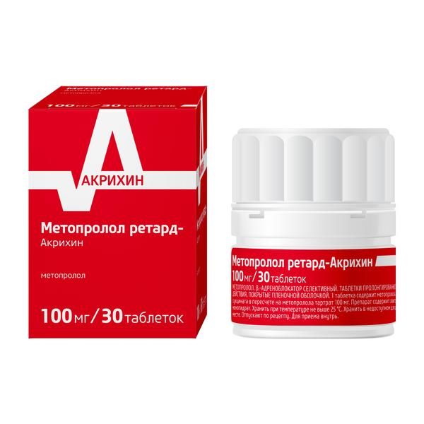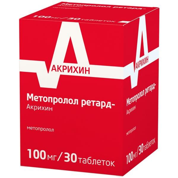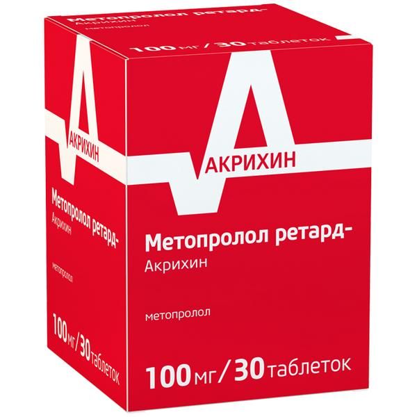 Метопролол ретард-Акрихин таблетки пролонгированного действия покрытые плёночной оболочкой 100мг №30