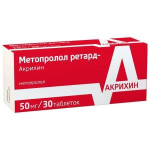 Метопролол ретард-Акрихин таблетки пролонгированного действия покрытые плёночной оболочкой 50мг №30