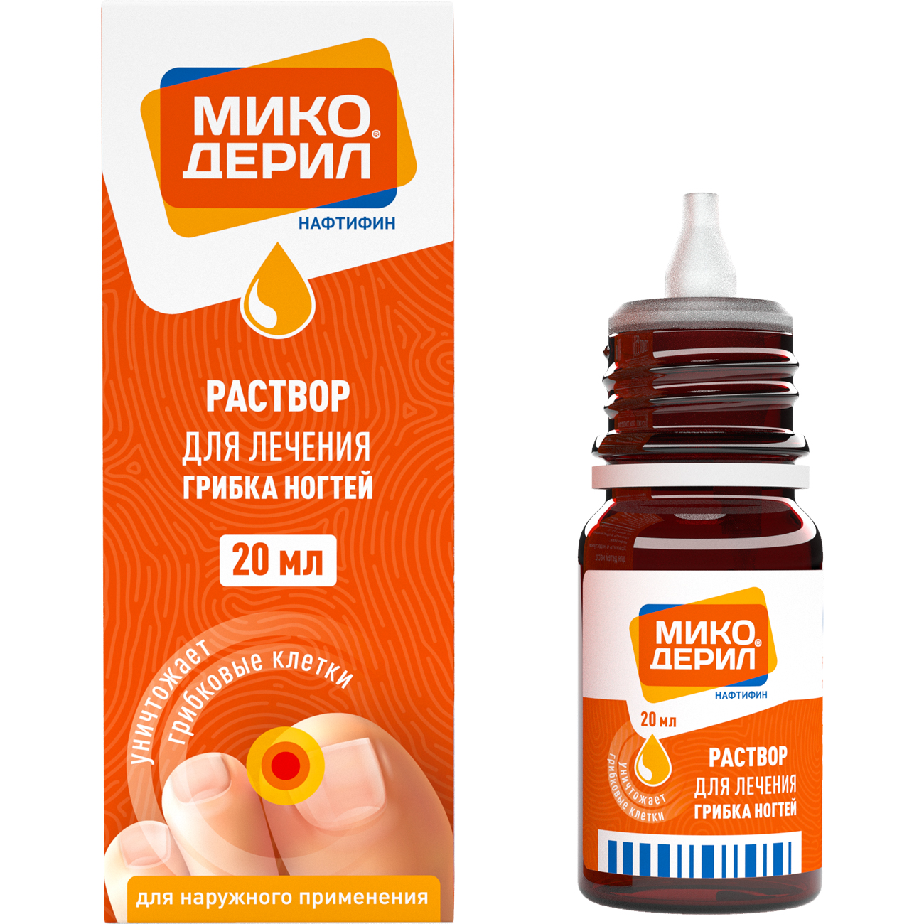 Микодерил®, раствор для наружного применения, 1 % — противогрибковое средство, предназначенное для наружного применения, относящееся к классу аллиламинов. Его активным ингредиентом является нафтифин. Механизм действия связан с ингибированием сквален-2,3-эпоксидазы, что приводит к снижению образования эргостерола, входящего в состав клеточной стенки гриба. Нафтифин, влияя на скваленэпоксидазу, не затрагивает систему цитохрома P-450.