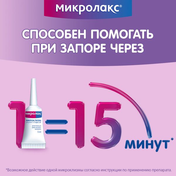 МИКРОЛАКС® — комбинированный препарат, оказывающий слабительное действие. Эффект наступает через 5–15 мин. В состав препарата входят натрия цитрат (пептизатор, который вытесняет связанную воду, содержащуюся в каловых массах), натрия лаурилсульфоацетат (разжижает содержимое кишечника) и сорбит (усиливает слабительное действие путём стимуляции поступления воды в кишечник). Увеличение количества воды за счёт пептизации и разжижения способствует размягчению каловых масс и облегчает опорожнение кишечника.