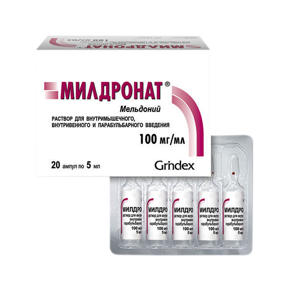 Милдронат раствор для внутримышечного внутривенного и парабульбарного введения 10% ампулы 5 мл №20