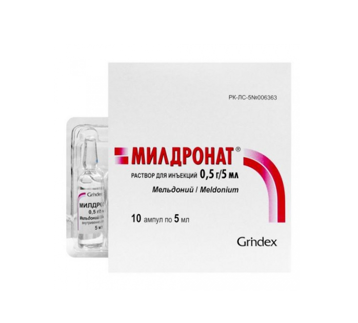 По 0,5 г (5 мл препарата МИЛДРОНАТ®) в/м или в/в 2 раза в день. Курс лечения — 7–10 дней.