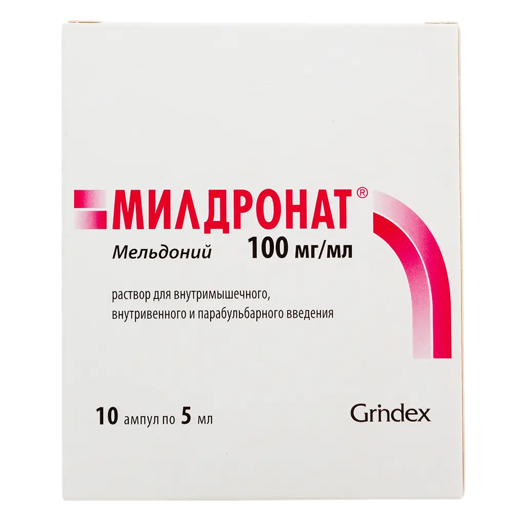Милдронат раствор для внутримышечного внутривенного и парабульбарного введения 10% ампулы 5 мл №10