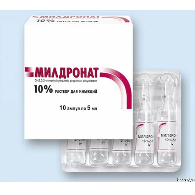 Милдронат раствор для внутримышечного внутривенного и парабульбарного введения 10% ампулы 5мл №10