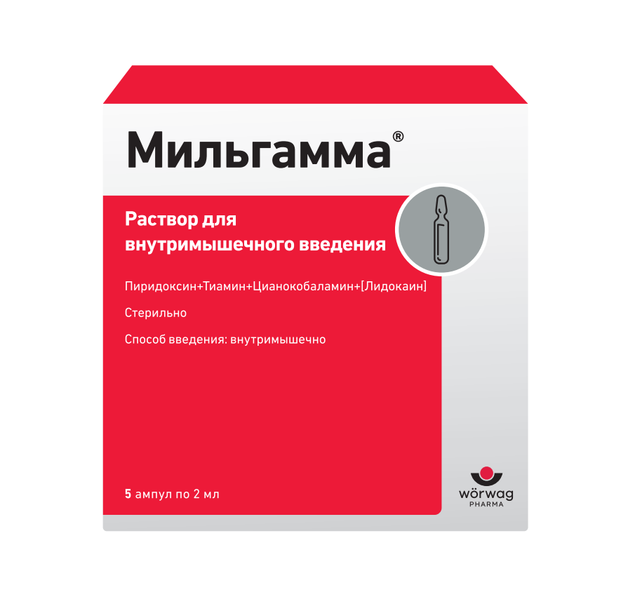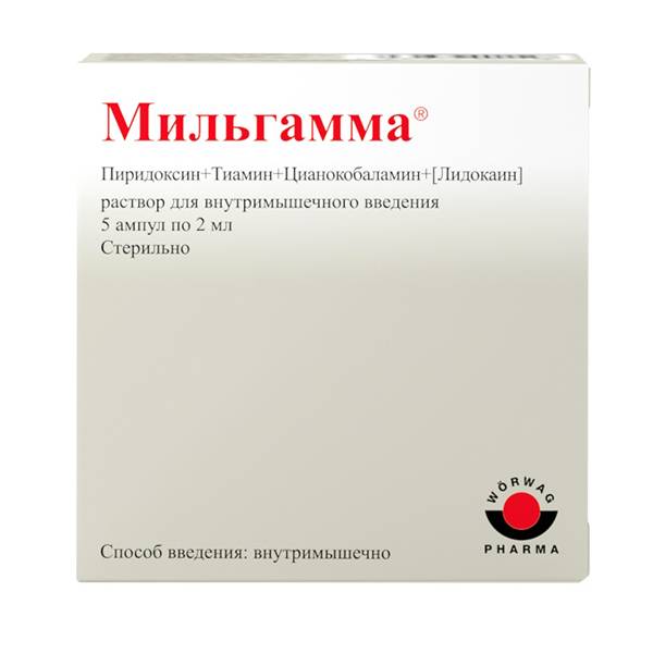В случаях выраженного болевого синдрома для быстрого достижения высокого уровня препарата в крови лечение целесообразно начинать с 2,0 мл ежедневно в течение 5–10 дней. В дальнейшем после стихания болевого синдрома и при лёгких формах заболевания переходят в дальнейшем либо на терапию лекарственной формой для приёма внутрь (например, препарат Мильгамма® композитум), либо на более редкие инъекции (2–3 раза в неделю в течение 2–3 недель) с возможным продолжением терапии лекарственной формой для приёма внутрь (например, препаратом Мильгамма® композитум).