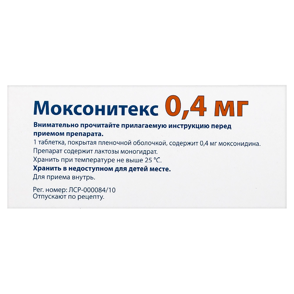 Действующее вещество: моксонидин 0,2 мг / 0,3 мг / 0,4 мг.