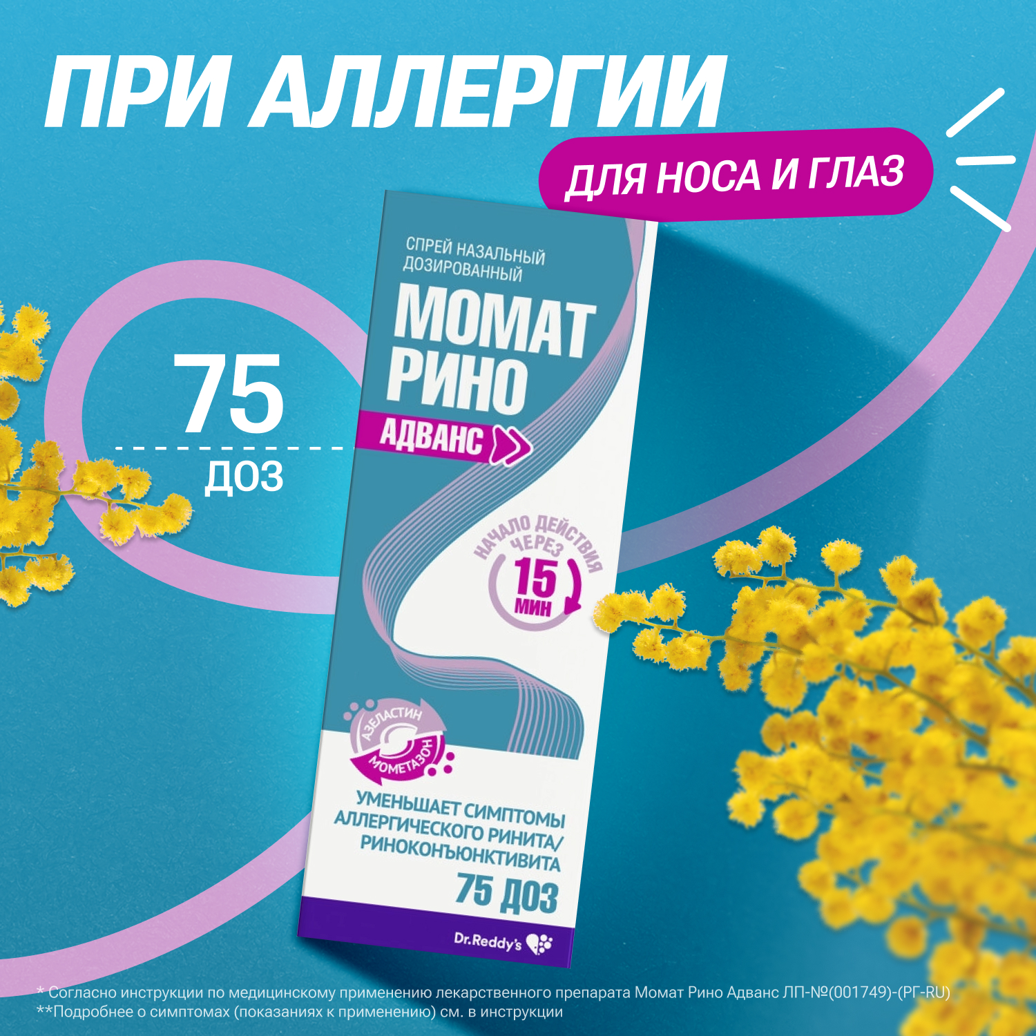 Момат Рино Адванс спрей назальный дозированный 140мкг+50 мкг/доза флакон 75 доз