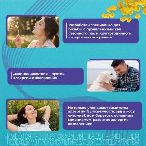 Лечение сезонного и круглогодичного аллергического ринита у взрослых (устранение симптомов, таких как боль и ощущение давления в области околоносовых пазух, заложенность носа, насморк, чихание, зуд в носу, слезотечение) c 18 лет.