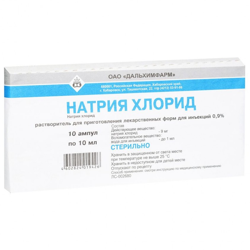 Натрия хлорид растворитель для приготовления лекарственных форм для инъекций 0,9% ампулы 10мл №10