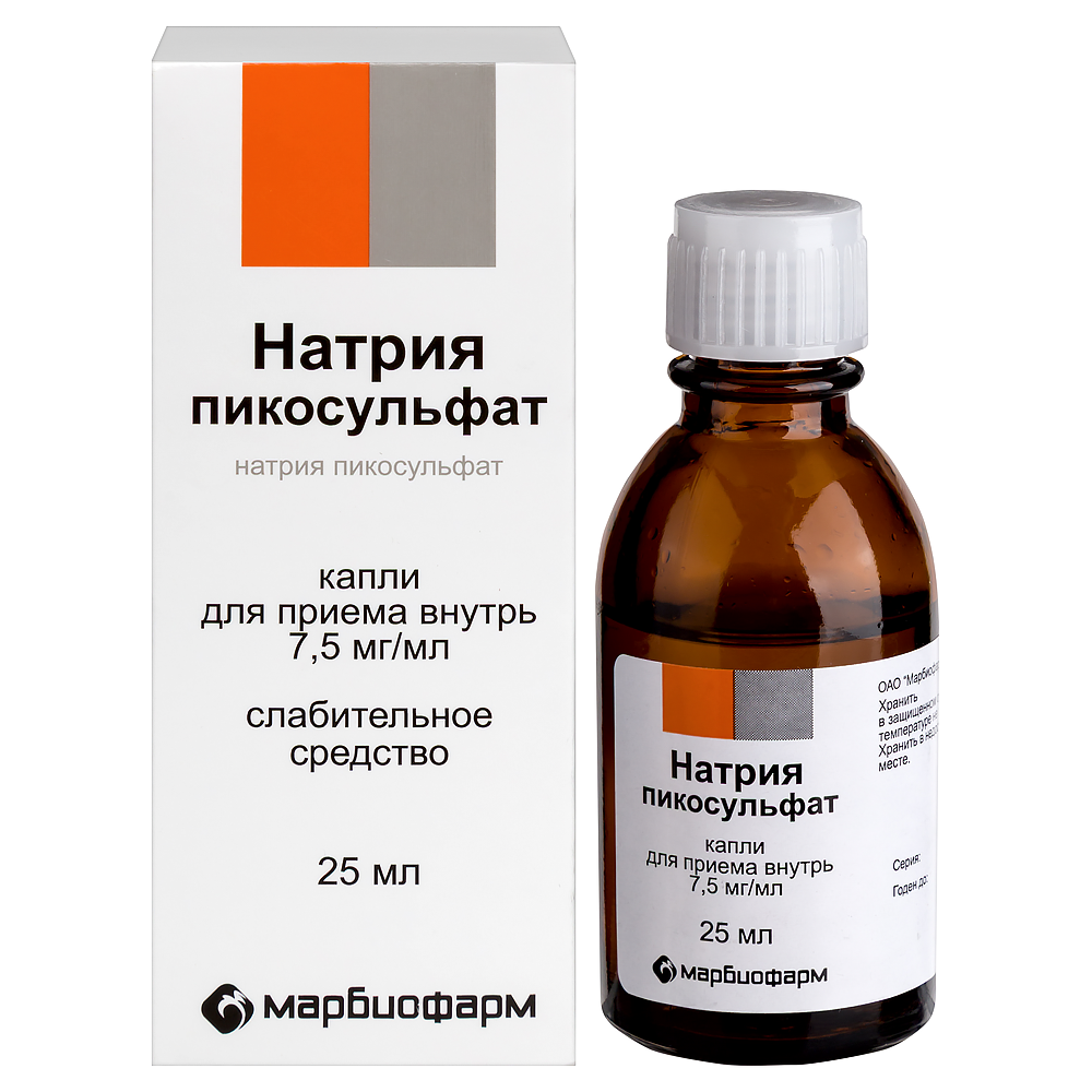 Натрия пикосульфат капли для приёма внутрь 7,5 мг/мл флакон-капельница 25мл