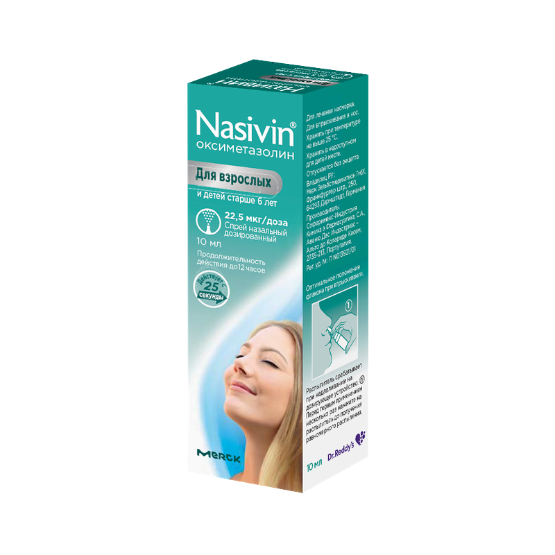 Препарат Називин® спрей назальный 0,05 % действует с 25 секунды.