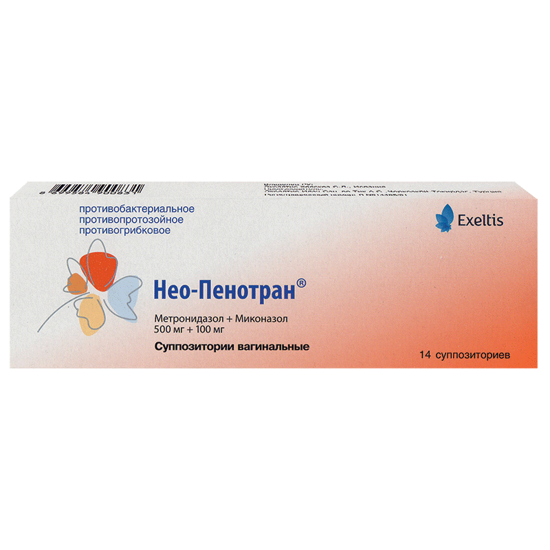 Суппозитории Нео-Пенотран® содержат метронидазол, который оказывает антибактериальное и противотрихомонадное действие и миконазол, обладающий противогрибковым эффектом. Метронидазол представляет собой антибактериальное и противопротозойное средство и является активным в отношении Gardnerella vaginalis и анаэробных бактерий, включая анаэробный стрептококк и Trichomonas vaginalis. Миконазола нитрат обладает широким спектром действия (особенно активен в отношении патогенных грибков, включая Candida albicans — возбудителя молочницы), эффективен в отношении грамположительных бактерий.