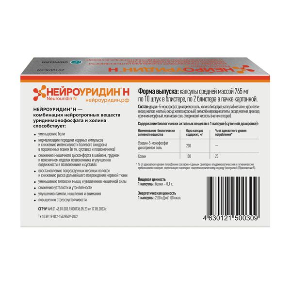 Нейроуридин Н капсулы массой 765мг №20