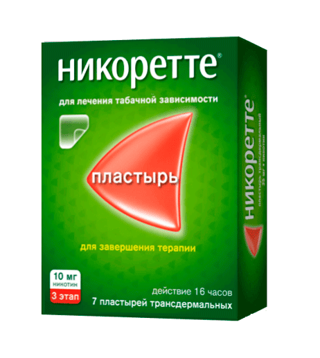 Никоретте® пластырь трансдермальный может применяться при резком отказе от курения, а также для увеличения промежутков времени между курением с целью как можно большего снижения курения до полного отказа от курения. Пациент должен сделать все возможное, чтобы окончательно бросить курить при лечении пластырем Никоретте® .