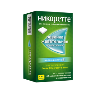 Никоретте резинка жевательная лекарственная морозная мята 4мг №105