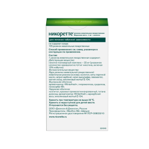 Действующее вещество: никотин-полимерный комплекс – 11 мг (указанное количество эквивалентно 2,2 мг никотина, включая 10% избыток).