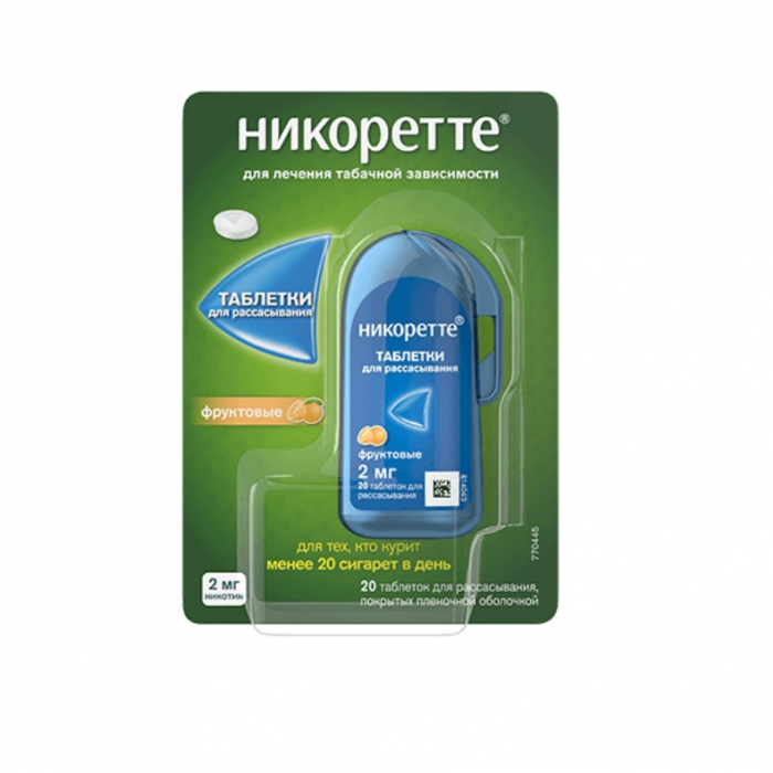 Никоретте таблетки для рассасывания покрытые пленочной оболочкой фруктовые 2мг №20