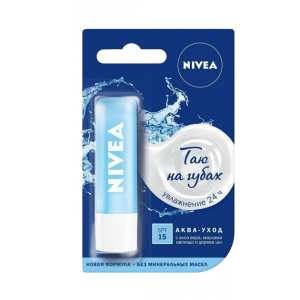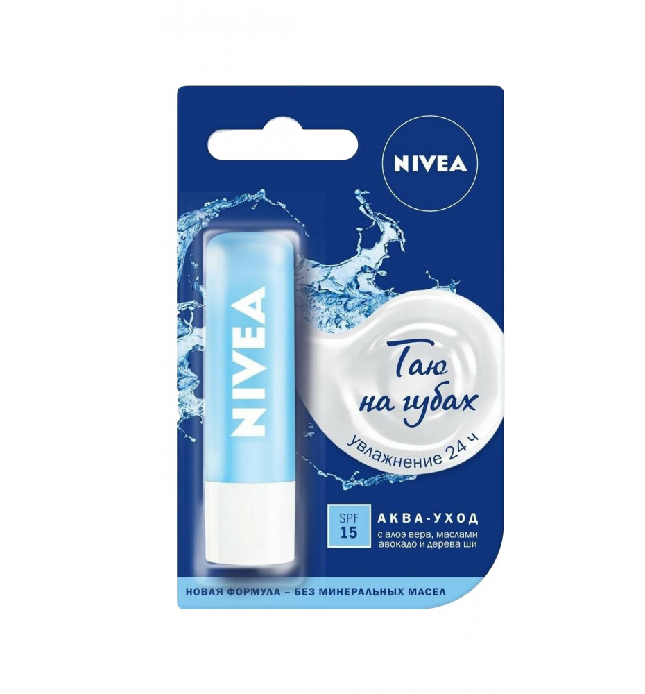 Хотите, чтобы губы оставались увлажненными 24 часа*? Попробуйте Бальзам для губ "Аква-уход" от NIVEA с усовершенствованной' формулой, натуральным маслом дерева ши и витаминами С и Е. Легкая водостойкая формула бальзама для губ мгновенно тает на губах, придавая мягкость и гладкость, защищает губы от мороза и ветра, а наличие фактора защиты SPF 15 предохраняет от воздействия UVA/UVB излучения. Подходит для использования в любое время года, особенно в сухой летний период или холодный зимний. Гигиеническая помада ухаживает за губами, придавая им более гладкий и увлажненный вид. Натуральные масла и витамины в составе. Дерматологически протестировано.