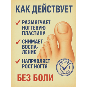 - Размягчает ногтевую пластину, травмирующую ткань.