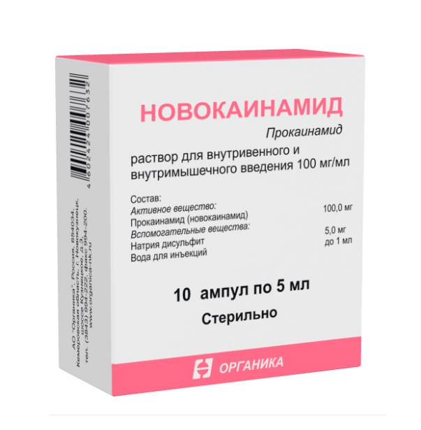 Новокаинамид раствор для внутривенного и внутримышечного введения 100мг/мл ампулы 5мл №10
