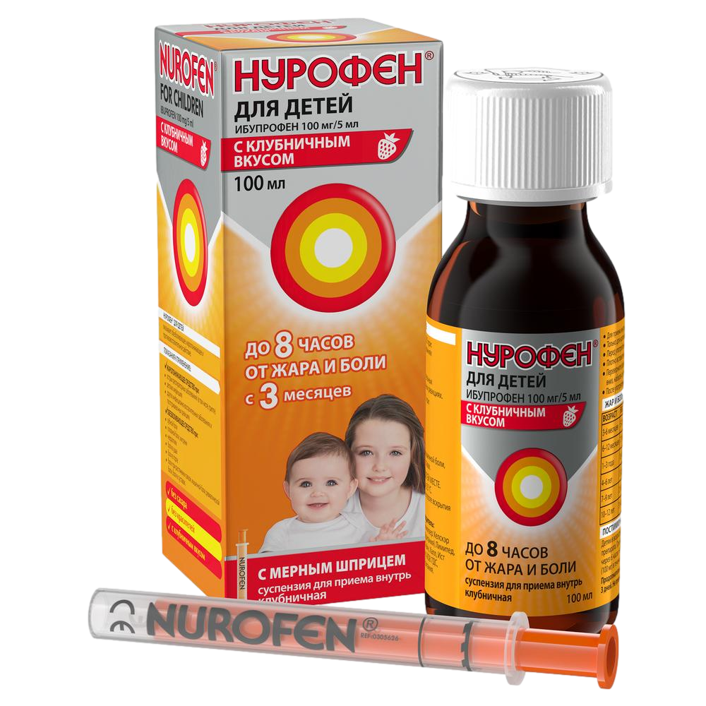 Нурофен для детей суспензия для приема внутрь клубничная 100 мг/5 мл флакон 100мл