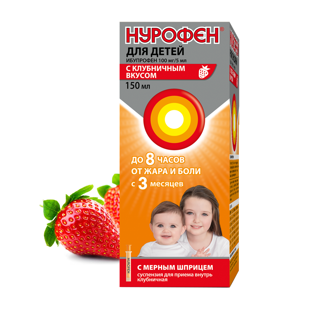 Нурофен для детей суспензия для приема внутрь клубничная 100мг/5мл флакон 150мл