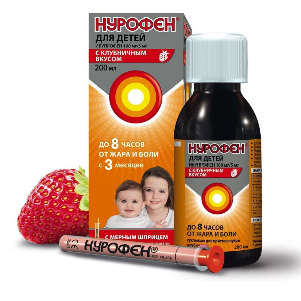 Нурофен для детей суспензия для приема внутрь клубничная 100мг/5мл флакон 200мл