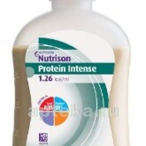 - НУТРИЗОН ПРОТЕИН ИНТЕНС СМЕСЬ ДЛЯ ЭНТЕРАЛЬНОГО ПИТАНИЯ - специализированный продукт диетического лечебного питания для пациентов старше 12 лет с повышенными потребностями в белке и/или при необходимости ограничения объёма вводимой жидкости, в том числе критических состояниях, а так же пациентов с сепсисом, ожогами, травмами, онкологическими заболеваниями и при проведении заместительной почечной терапии у пациентов с хронической почечной недостаточностью.