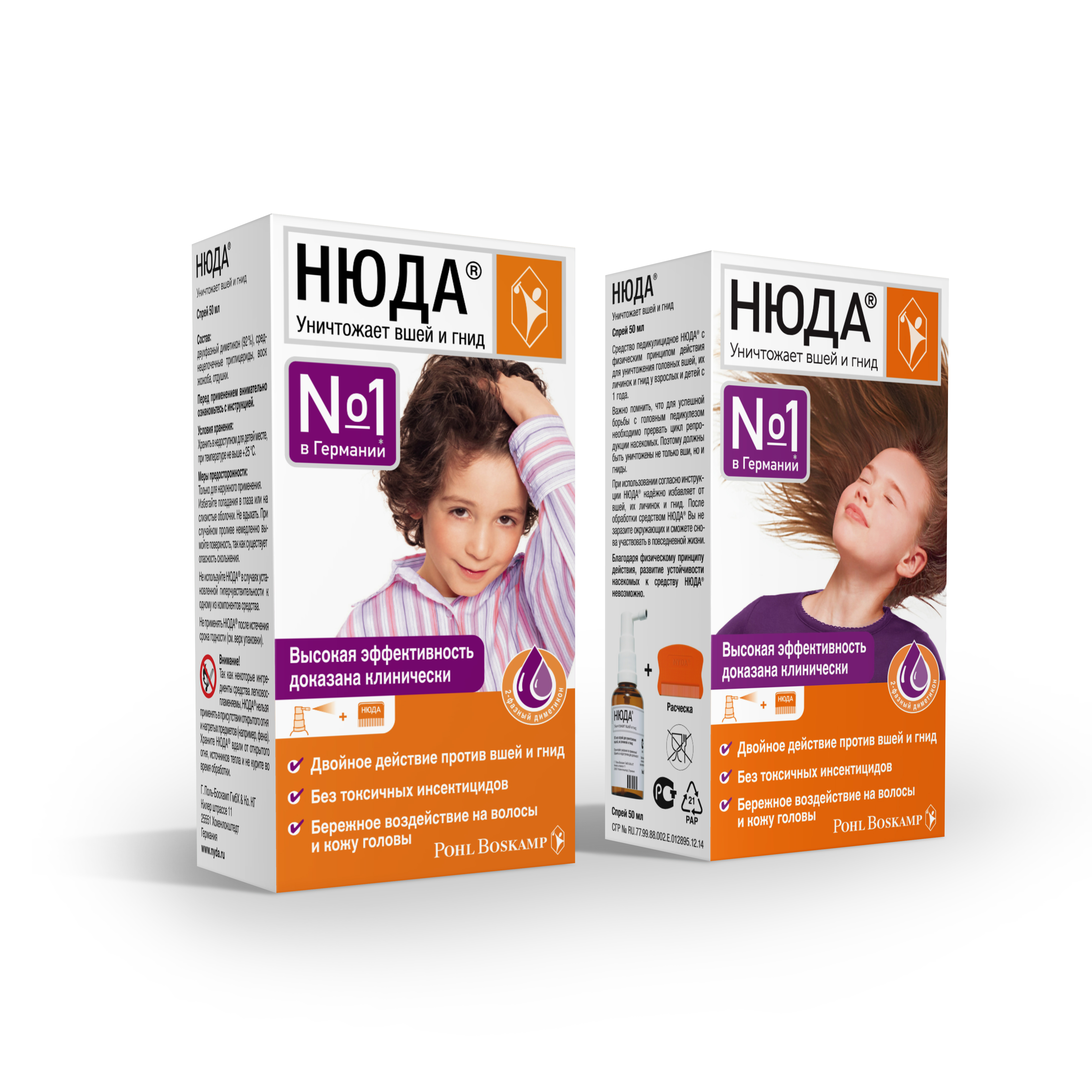 Средство педикулицидное НЮДА® с физическим принципом действия для уничтожения головных вшей, их личинок и гнид у взрослых и детей с 1 года.