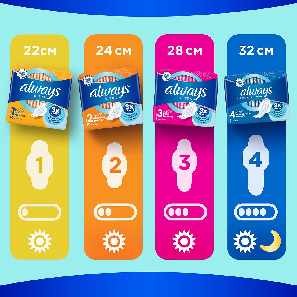 Гигиенические прокладки Always Ultra оснащены технологией нейтрализации запаха, которая блокирует неприятный запах, а не просто маскирует его. Гигиенические прокладки Always Ultra толщиной всего 3мм дарят комфорт и обеспечивают непревзойденную защиту во время менструации.