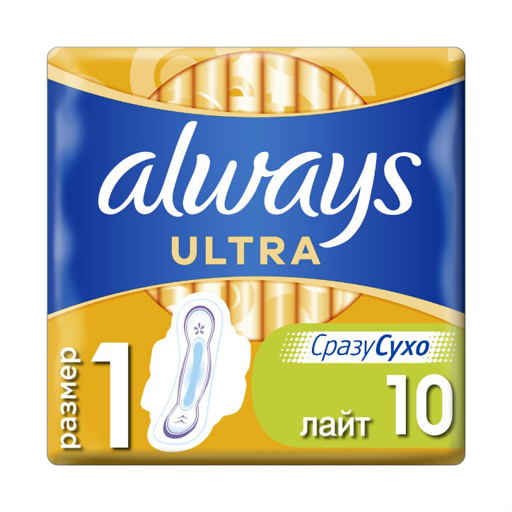 Гигиенические прокладки Always Ultra Light (Размер 1) с системой Сразу Сухо мгновенно впитывают влагу и удерживают ее внутри, обеспечивая до 100% защиты и уверенности.