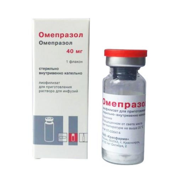 Омепразол лиофилизат для приготовления раствора для инфузий 40мг флакон №1/Красфарма
