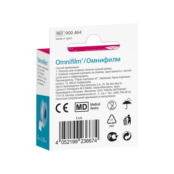 OMNIFILM/ОМНИФИЛМ - изготовлен из специальной пленки. Лейкопластырь не боится воды, гипоаллергенный, подходит для чувствительной кожи. Не останавливает воздухообмен, фиксирует повязки, катетеры, зонды и др., гипоаллергенный пластырь для водостойкой фиксации и закрепления повязок в рулоне. Рекомендуется для пациентов с чувствительной кожей.