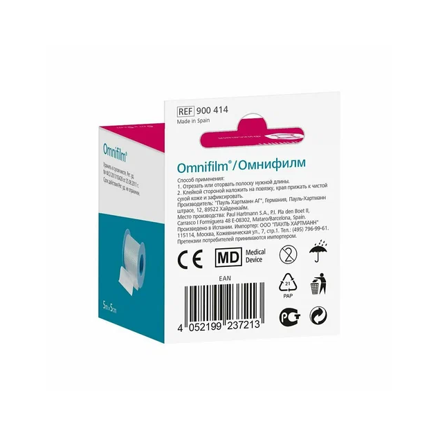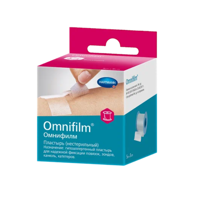 OMNIFILM/ОМНИФИЛМ - изготовлен из специальной пленки. Лейкопластырь не боится воды, гипоаллергенный, подходит для чувствительной кожи. Не останавливает воздухообмен, фиксирует повязки, катетеры, зонды и др., гипоаллергенный пластырь для водостойкой фиксации и закрепления повязок в рулоне. Рекомендуется для пациентов с чувствительной кожей.