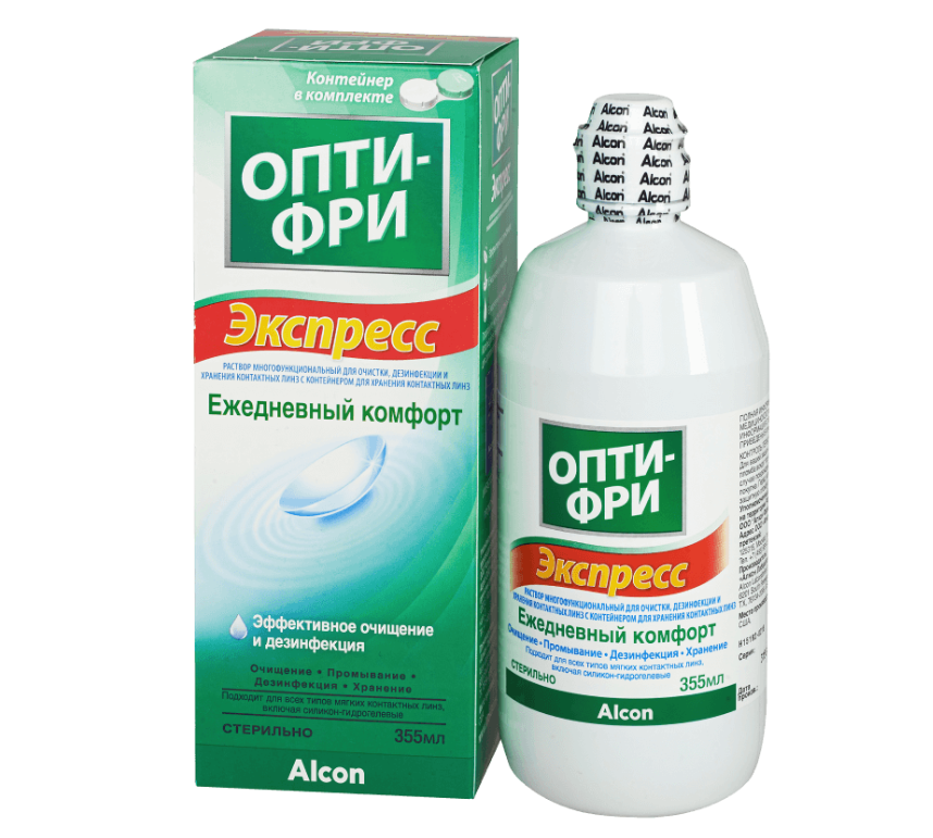 - При возникновении легкого раздражения, дискомфорта или помутнения при ношении контактных линз закапайте одну-две капли многофункционального раствора Опти-Фри Экспресс прямо в глаз и поморгайте два-три раза. Многофункциональный раствор Опти-Фри Экспресс можно применять для увлажнения по необходимости в течение дня.