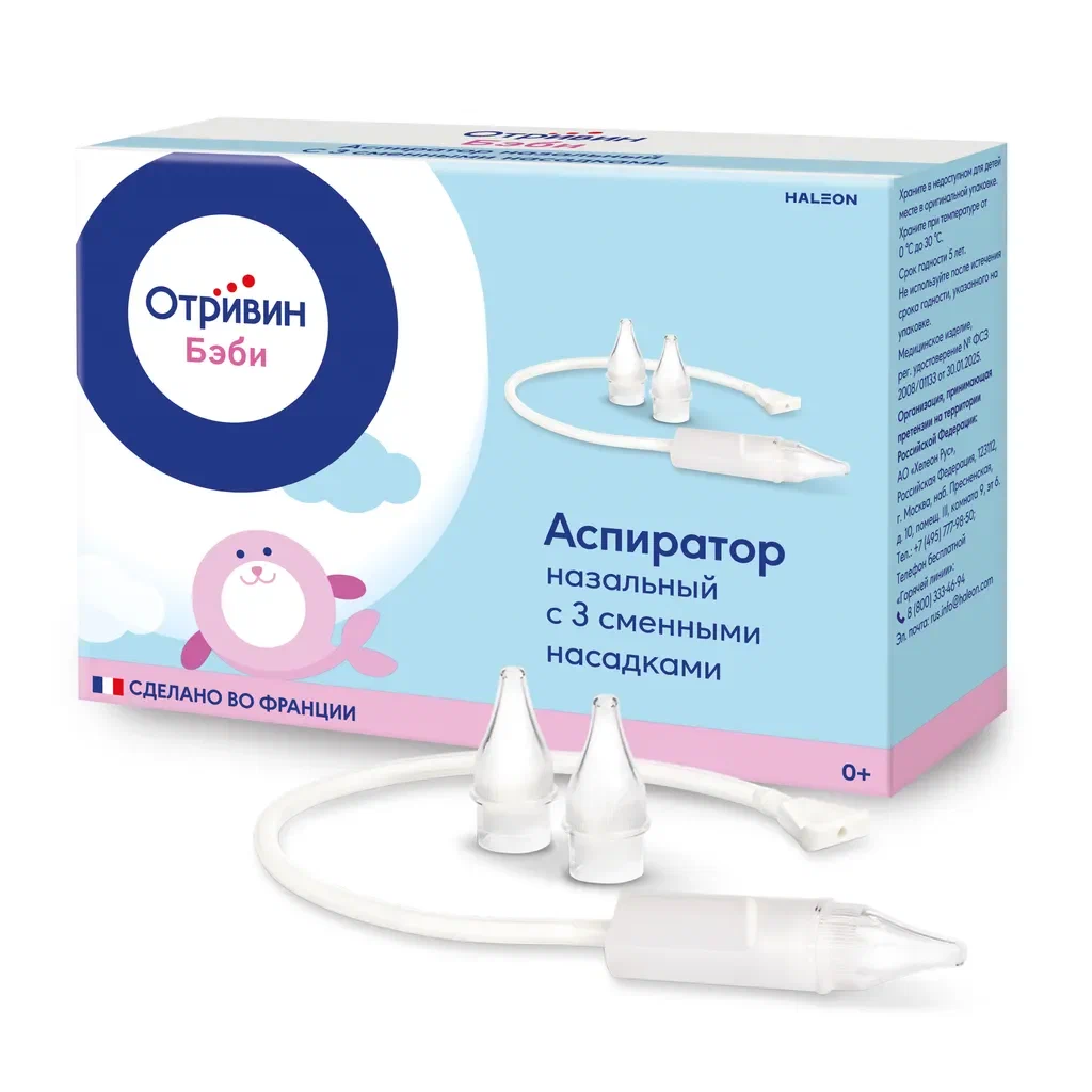 Для облегчения процедуры перед использованием назального аспиратора Отривин Бэби рекомендуется промыть нос солевым раствором, например, каплями или спреем Отривин Бэби.Комплектация: