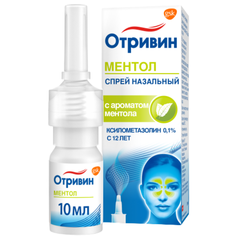 Отривин спрей назальный дозированный с ментолом и эвкалиптом 0,1% флакон 10мл