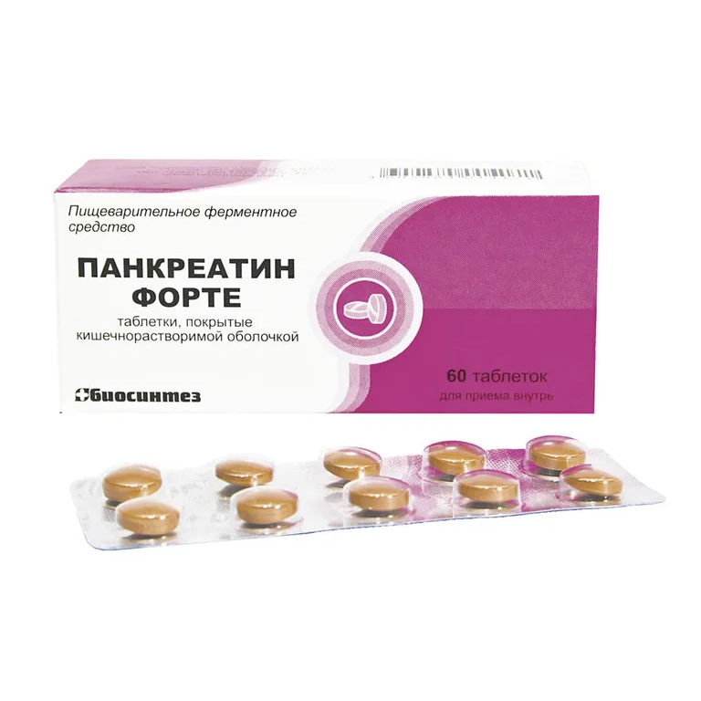 Панкреатин форте таблетки покрытые кишечнорастворимой оболочкой №60